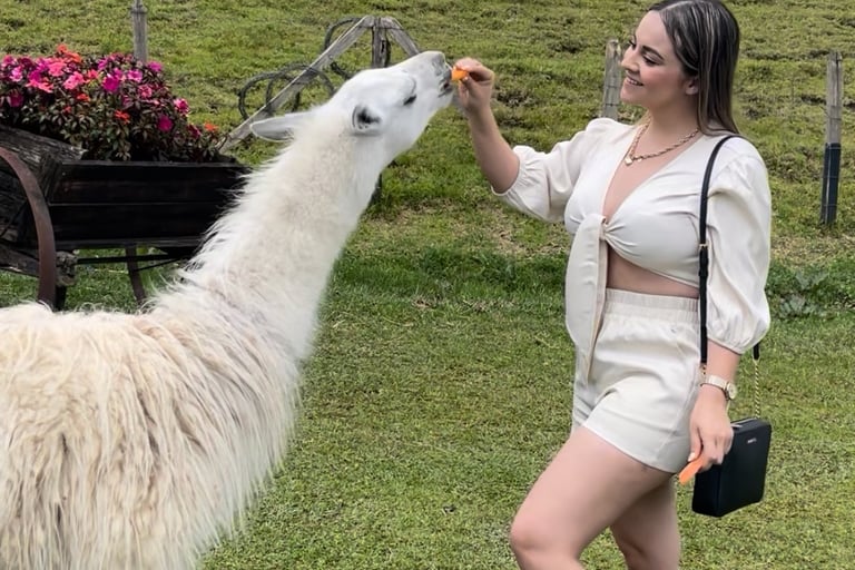 Primero, haremos una parada especial en una granja emblemática, donde podrás convivir con llamas, alpacas, caballos y otros animales típicos de la región.